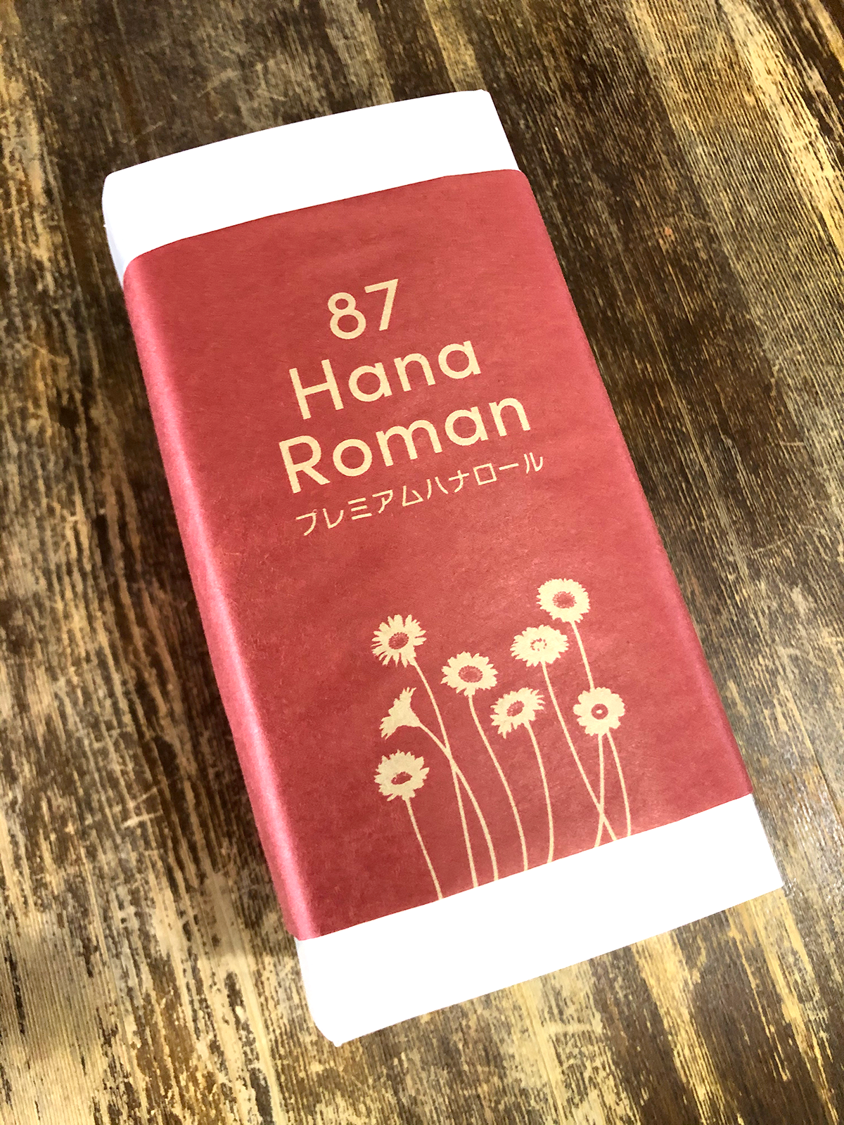 夕陽の見えるカフェペパーミントで長く愛されているプレミアムハナロールは楊貴妃ロールと同じく阿蘇山ピュアクリームを使用しています。