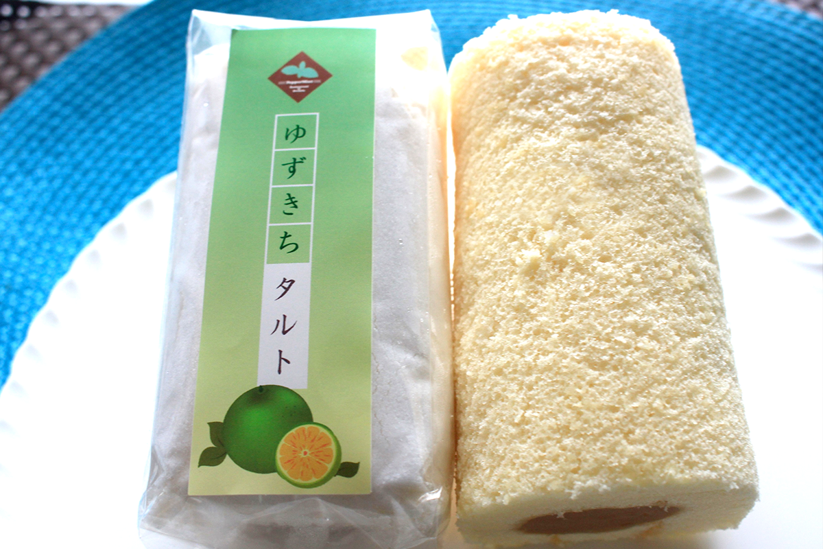 純黒糖を使用した甘くてしっとり触感の生地に爽やかな香りが拡がる長門ゆずきち生クリームのご当地ロールケーキです。