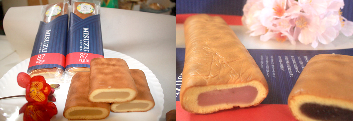 なめらかなあんをしっとりとした生地で巻いた『みすゞ巻き』は、金子みすゞのように、いつまでも愛される長門の銘菓として、心を込めてお届けします。